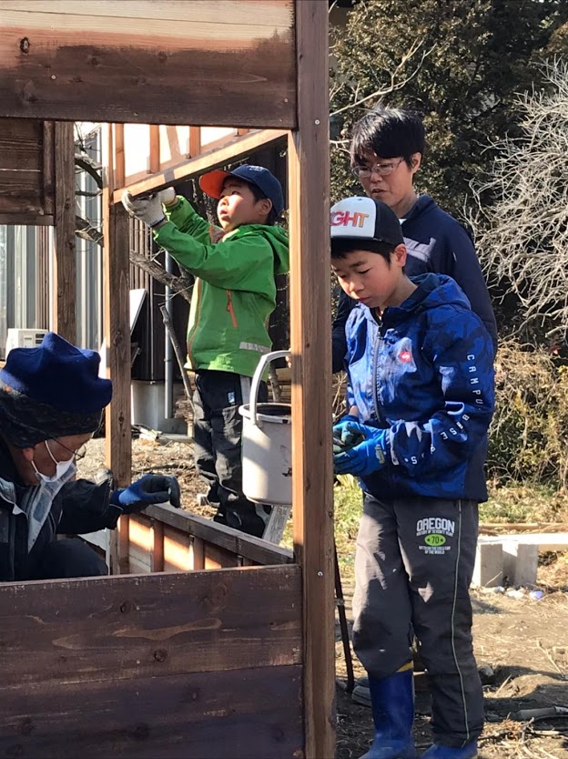 ご家族みんなで、にわとり小屋を組み立てました!