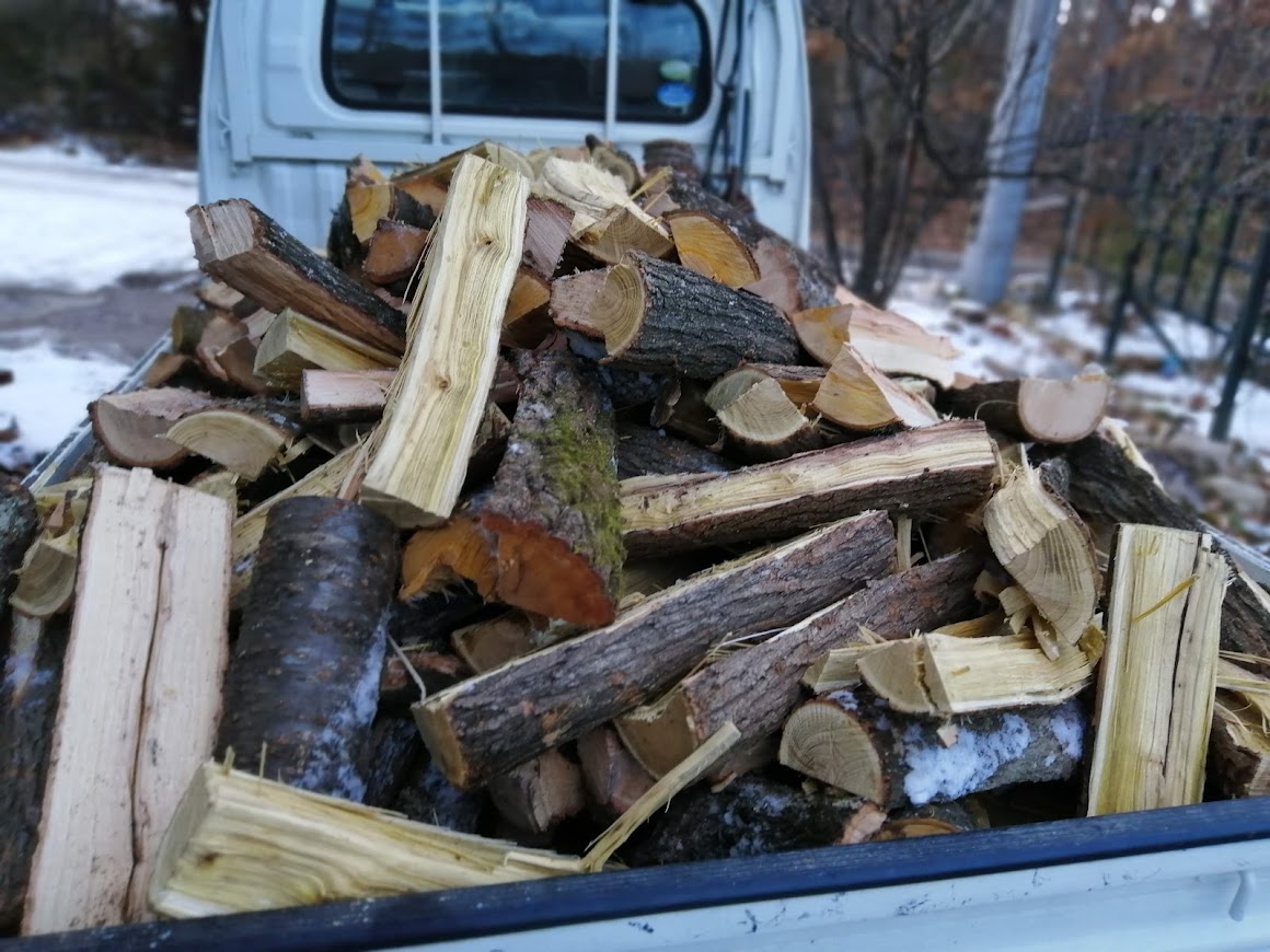 半日で軽トラックにてんこ盛りの薪ができました。