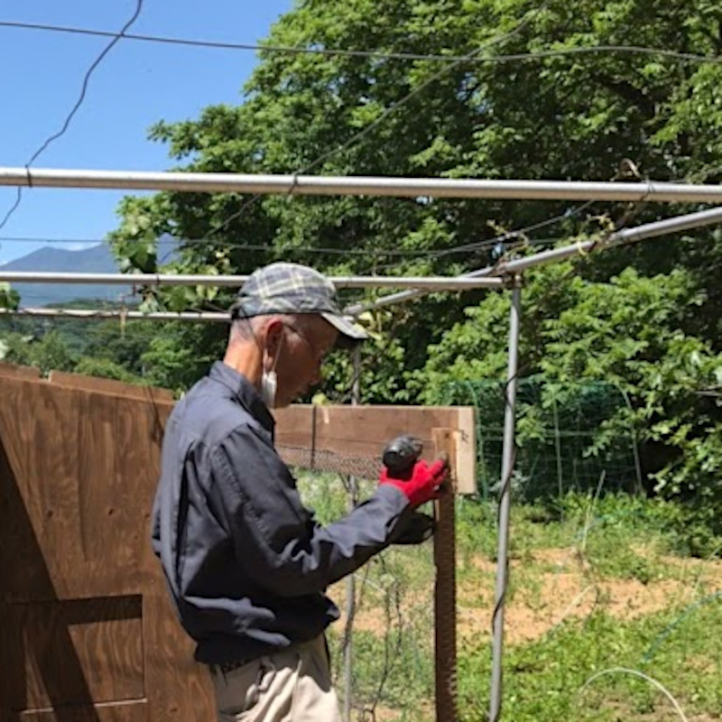 高原の畑のなかの一軒家。庭のブドウ棚の下に、NorthForest-SSを設置させていただきました。